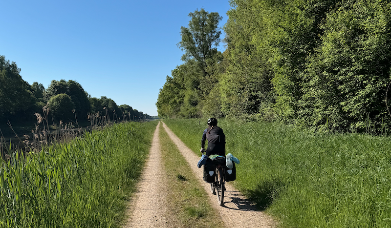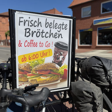 Just shortly after 9am we were on the road, ready to tackle the next sunny day of riding. We had about 40 kilometers of gravel path along the canal ahead of us, before our route would meet the Elbe River Cycle Path. Like yesterday, the path was not busy at all, and we had most of it to ourselves. After just over 2.5 hours of riding we had our first refueling break at one of the bakeries that you’d find all over Germany, in every little village.