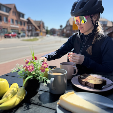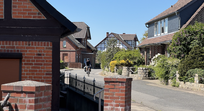 Our first morning started with a full German breakfast, including scrambled eggs and my favorites, German rolls. While we were eating, the Inn’s owner seemed to be happy to have English-speaking guests over, and in his northern-German accent kept talking to us about his own cycling background and all the other international guests he’d been hosting in the past.