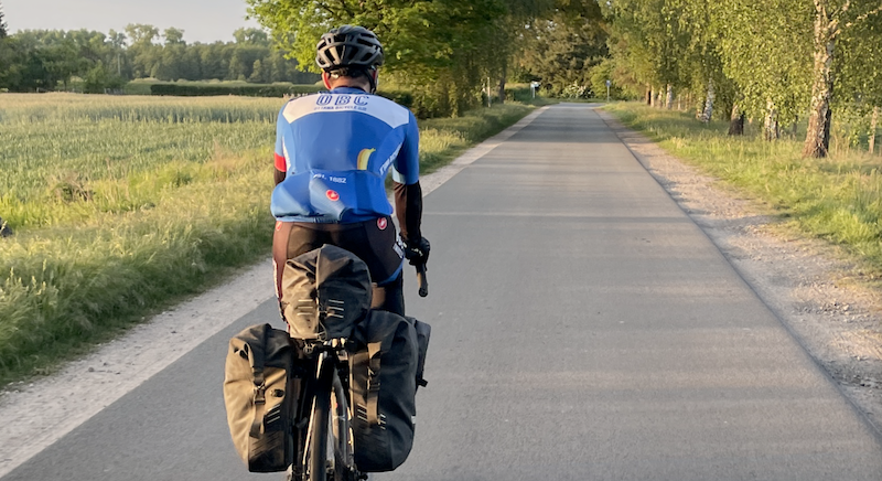 We spent a couple hours high-speed traveling through all of Germany until we reached the northern coastline in Lübeck-Travemünde, at the Baltic Sea. It was windy, quite chilly, too, but the sun was out and we finally started our very first stage – heading south for 60 kilometers along the Elbe-Lübeck-Channel. Just like last year in New York States, our tour began with some easy gravel riding on calm, unpaved bike paths along a picturesque waterway that connects the Baltic Sea in the north with the Elbe River coming from the North Sea.