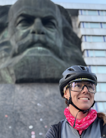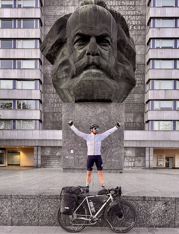 Only a few hours later we approached my hometown: Chemnitz! What a surreal feeling that was. I grew up in this area and spend many years exploring it by foot, and bicycle, and now I was back again. Not even four days ago we started all the way at the Baltic Sea and suddenly cycled through the streets that felt so familiar. Both of us felt excited and relieved at the same time; but before heading over to our accommodation for the next couple of days we just had to stop at the city’s most remarkable landmark – a large bronze statue of Karl Marx’ head (after whom the town was named during the cold war).